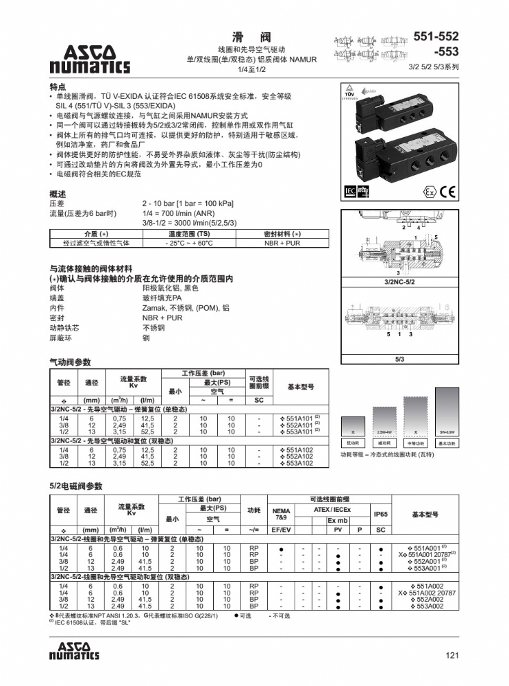 551-552-553系列鋁制閥體NAMUR安裝3/2 5/2 5/3